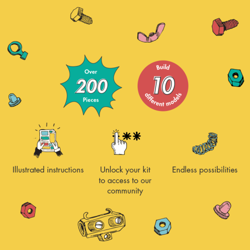 Je to rodinná záležitost! Tato sada obsahuje více než 1000 barevných matic, šroubů a tvarovaných kousků a obsahuje dostatek dílků pro zábavu v pokoji plném dětí, návštěvníků a přátel. Tato rodinná sada umožňuje vytvoření alespoň deseti modelů z krabice s nekonečnými možnostmi pro vaše vlastní kreativní nápady. Jedná se o hračku, která pomáhá mladým lidem růst v oblastech vědy, technologie, inženýrství, umění a matematiky. Hračky OffBits také podporují rozvoj jemné motoriky, prostorové představivosti, řešení problémů a nápadité hry. Co můžete postavit:Členy posádky MechBit, WheelBit a OscarBit plus nekonečné množství jedinečných výtvorů, které můžete postavit pomocí své fantazie. Máte kolem sebe karton, šroubky nebo jiné zábavné materiály? Vylepšujte s předměty každodenní potřeby a vytvořte také své vlastní jedinečné vynálezy. Hlavní vlastnosti: obsahuje nářadí pro sestavení stavebnicekompatibilnost s každodenními předmětyrozvoj kreativity, jemné motoriky i logického myšlenívhodné od šesti letvíce než 1000 dílů
