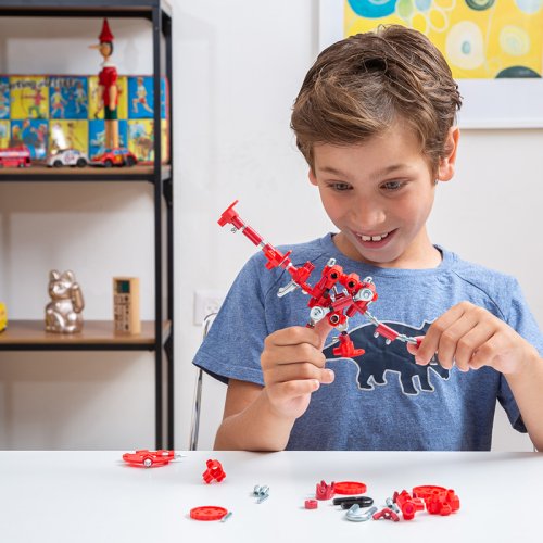 Připravte se na dobrodružnou cestu zpět do prehistorické éry s T-rexBitem, jedním z nejmocnějších masožravých dinosaurů, kteří se kdy chodili po povrchu Země! Popusťte uzdu své fantazii. Tato sada umožňuje vytvoření tří modelů s dalšími nekonečnými možnostmi pro vaše vlastní kreativní nápady. Jedná se o hračku, která pomáhá mladým lidem růst v oblastech vědy, technologie, inženýrství, umění a matematiky. Hračky OffBits také podporují rozvoj jemné motoriky, prostorové představivosti, řešení problémů a nápadité hry. Co můžete postavit:TrexBit, CuriousBit, BlockBit plus nekonečné množství jedinečných výtvorů, které můžete postavit pomocí své fantazie. Máte kolem sebe karton, šroubky nebo jiné zábavné materiály? Vylepšujte s předměty každodenní potřeby a vytvořte také své vlastní jedinečné vynálezy. Hlavní vlastnosti: obsahuje nářadí pro sestavení stavebnicekompatibilnost s každodenními předmětyrozvoj kreativity, jemné motoriky i logického myšlenívhodné od osmi let3 v 1 Ilustrační foto balení:
