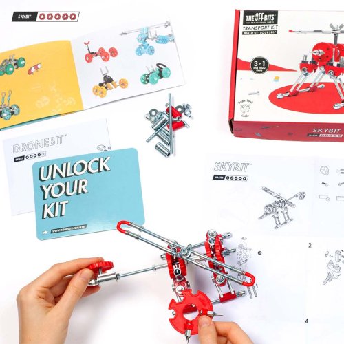 Vznášejte se nad nejvyšším mrakodrapem! SkyBit je hi-tech vrtulník pro vašeho robota OffBits. Díky řadě koleček a chytrých spojů je ideální pro vašeho nejdodvážnějšího robota. Popusťte uzdu své fantazii. Tato sada umožňuje vytvoření tří modelů s dalšími nekonečnými možnostmi pro vaše vlastní kreativní nápady. Jedná se o hračku, která pomáhá mladým lidem růst v oblastech vědy, technologie, inženýrství, umění a matematiky. Hračky OffBits také podporují rozvoj jemné motoriky, prostorové představivosti, řešení problémů a nápadité hry. Co můžete postavit:VrtulníkBit, dronBit nebo alpakuBit plus nekonečné množství jedinečných výtvorů, které můžete postavit pomocí své fantazie. Máte kolem sebe karton, šroubky nebo jiné zábavné materiály? Vylepšujte s předměty každodenní potřeby a vytvořte také své vlastní jedinečné vynálezy. Hlavní vlastnosti: obsahuje nářadí pro sestavení stavebnicekompatibilnost s každodenními předmětyrozvoj kreativity, jemné motoriky i logického myšlenívhodné od osmi let3 v 1 Ilustrační foto balení: