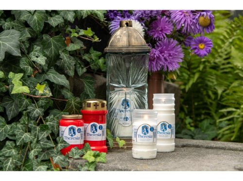 Litá svíčka Theresia s víčkem v červené barvě, hoří až 2 dny.