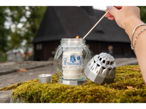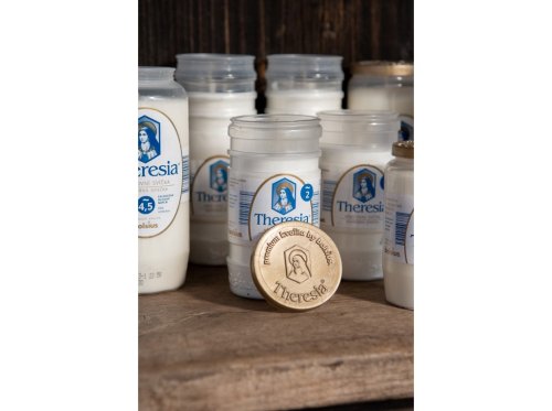 Litá vkladová svíčka Theresia v bílé barvě, hoří až 2 dny.