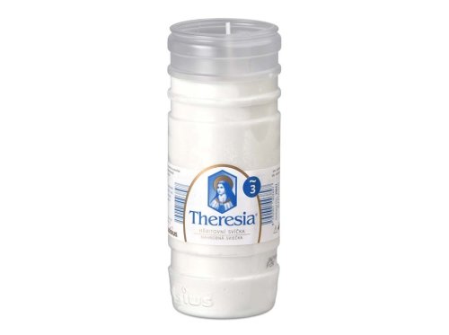 Litá vkladová svíčka Theresia v bílé barvě, hoří až 3 dny.