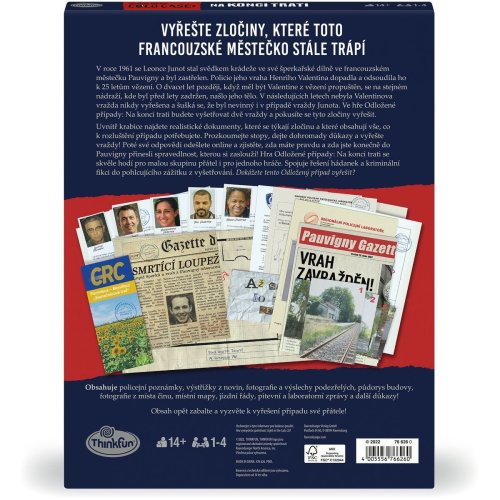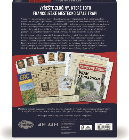 V roce 1961 se Leonce Junot stal svědkem krádeže ve své šperkařské dílně ve francouzském městečku Pauvigny a byl zastřelen. Policie jeho vraha Henriho Valentina dopadla a odsoudila ho k 25 letům vězení. O dvacet let později, když měl být Valentine z vězení propuštěn, se na stejném nádraží, kde byl před lety zadržen, našlo jeho tělo. V následujících letech nebyla Valentinova vražda nikdy vyřešena a šušká se, že byl nevinný i v případě vraždy Junota. Ve hře Odložené případy: Na konci trati budete vyšetřovat dvě vraždy a pokusíte se tyto zločiny vyřešit. Dokážete to? Uvnitř krabice najdete realistické dokumenty, které se týkají zločinu a které obsahují vše, co k rozluštění případu potřebujete. Prozkoumejte stopy, dejte dohromady důkazy a vyřešte vraždy! Poté své odpovědi odešlete online a zjistěte, zda máte pravdu a zda jste konečně do Pauvigny přinesli spravedlnost, kterou si zaslouží! Hra Odložené případy: Na konci trati se skvěle hodí pro malou skupinu přátel i pro jednoho hráče. Spojuje řešení hádanek a kriminální fikci do pohlcujícího zážitku z vyšetřování. Dokážete tento Odložený případ vyřešit?