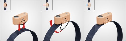 2. Sundejte obojek Vašeho psa/kočky. Přiložený silikonový kroužek (gumičku) vložte do jedné z bočních drážek odpuzovače. Ujistěte se, že gumička do drážky bezpečně zapadá.