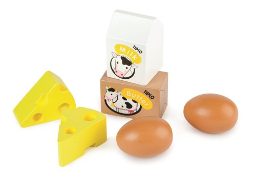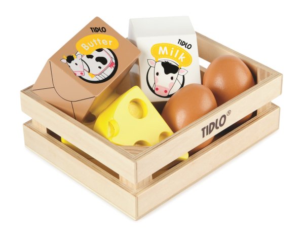 Čerstvá donáška vajec a mléčných výrobků přímo z farmy v dřevěném boxu s rukojeťmi. Skvělá hračka pro hru na obchodníky nebo kuchaře. Set obsahuje 2 vejce, 2 odřezky sýru, máslo a mléko. Skvělý způsob, jak děti naučit o důležitosti zdravé a vyvážené stravy, také o tom, odkud jídlo pochází a jak jej připravit. Každý z dílků je zavalitý a ideální pro malé dětské ruce. Podporuje kreativní a představivou hru. Vyrobeno z kvalitních materiálů z odpovědných zdrojů. Odpovídá evropské bezpečnostní normě.Hlavní vlastnosti:•ideální pro malé dětské ruce•podporuje kreativitu a představivost