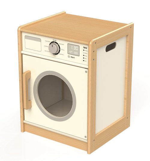 Všichni milují čerstvě vyprané, voňavé oblečení, v kterém si mohou hrát. Proč si tedy nepořídit tuto dřevěnou pračku ve venkovském stylu! Stane se z ní zábavný a realistický doplněk dětských pokojíků. Obsahuje otočný, klikající ciferník a velké přední dveře, které lze jednoduše otevřít. Zároveň může děti naučit, jak se pere prádlo, protože pokud smícháme červené a bílé oděvy, mohou se obarvit na růžovo! Dveřní okénko dětem umožňuje sledovat oblečení při praní. Na boku má rukojeti k lehčímu uchopení. Podporuje kreativní a představivou hru. Kombinujte s ostatními Tidlo kuchyňskými spotřebičemi a vytvořte hravou kuchyň! Po vybalení je nutno složit. Vyrobeno z kvalitních materiálů z odpovědných zdrojů. Odpovídá evropské bezpečnostní normě. Hlavní vlastnosti: otočný zvukový ciferníkboční úchopy pro lehčí manipulacipodporuje kreativitu a představivost