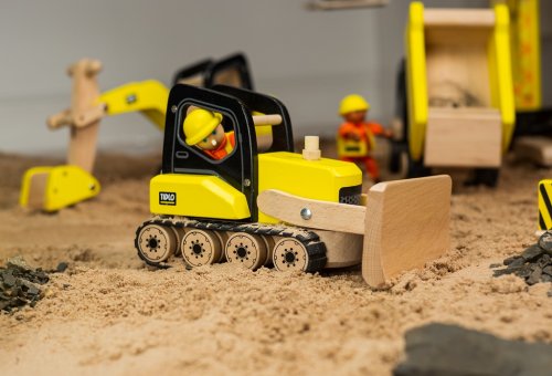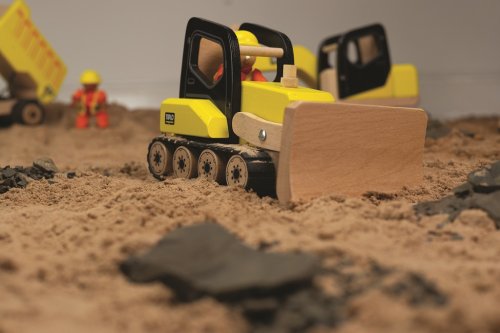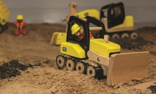 Tento masivní, detailní, dřevěný buldozer nebude mít problém odstranit cokoliv z cesty! Jeho radlicí se dá pohybovat nahoru a dolů a dokonce má i pásový pohon, velmi se tak přibližuje reálnému vozidlu. Buldozer má zaoblené tvary, a je celkově navržen tak, aby byl jednoduše uchopitelný malýma dětskýma rukama. Je svrchu otevřený a tak se do něj dají jednoduše vložit figurky stavitelů. Podporuje kreativitu a představivost, rozvíjí koordinaci ruka-oko a jemnou motoriku. Vyrobeno z kvalitních materiálů z odpovědných zdrojů. Odpovídá evropské bezpečnostní normě. Hlavní vlastnosti: jednoduše uchopitelnýpodporuje kreativitu a představivostjednoduché vložení figurek stavitelů