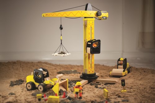 Nad staveništěm se tyčí jeřáb, je připraven k přenosu všeho materiálu! Jeřáb je plně funkční, otočný o 360 stupňů s paletou na háku, která zvedá náklad nahoru a dolů. Kabina je svrchu otevřená a tak do ní lze jednoduše vložit pracovníka. Kompatibilní s Tidlo figurkami stavitelů (není součástí balení). Podporuje dětskou kreativitu a představivost. Rozvíjí koordinaci ruka-oko a jemnou motoriku. Vyrobeno z kvalitních materiálů z odpovědných zdrojů. Odpovídá evropské bezpečnostní normě. Hlavní vlastnosti: otáčení o 360 stupňůpaleta na háku, otevřená kabinapodporuje kreativitu a představivostrozvíjí jemnou motoriku