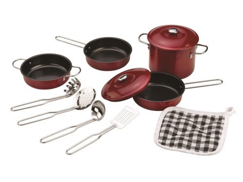 Mladí nastávající kuchaři jistě toto vybavení kuchyně ocení. Set o 11 kusech obsahuje 2 hrnce a 2 pánve, 3 typy naběraček a obracečku a chňapku. Všechno nádobí bylo zmenšeno, aby s ním mohly dobře pracovat i malé dětské ruce. Skvělý způsob jak děti naučit vařit různá jídla a dodržovat bezpečnost v kuchyni. Podporuje kreativní a představivou hru. Rozvíjí koordinaci ruka-oko, jemnou motoriku a zručnost. Odpovídá evropské bezpečnostní normě. Hlavní vlastnosti: set o 11 kusechpodporuje kreativitu a představivost