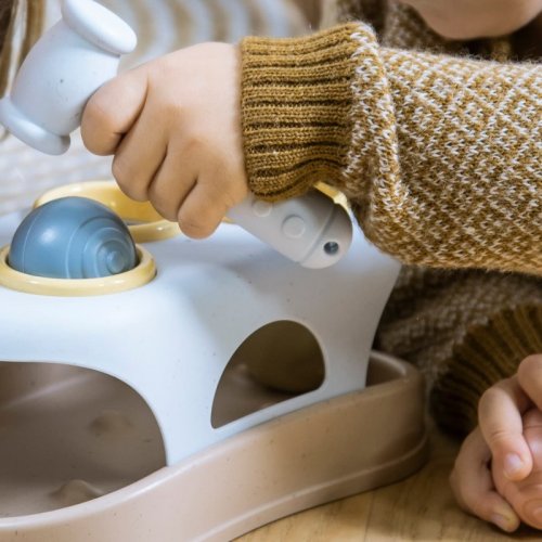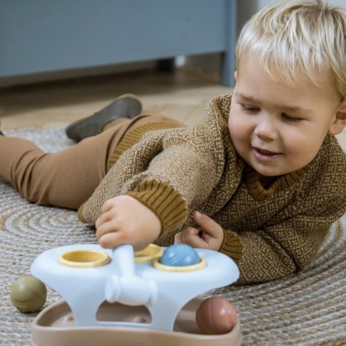 Plastová zatloukačka v krásných, jemných barvách, která stimuluje jemnou dětskou motoriku a podporuje rozvoj koordinace oko-ruka.