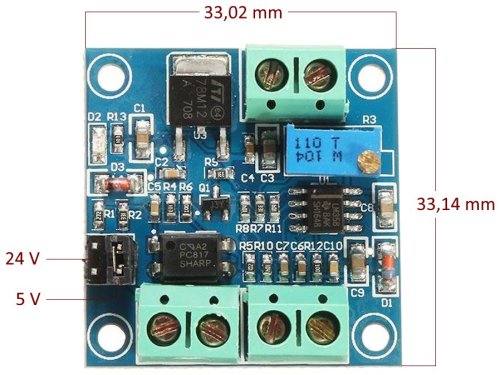Modul LC-LM358-PWM2V umožňuje převod obdélníkového PWM signálu s kmitočtem 0 až 1 kHz na lineární analogové napětí v rozsahu 0 až 10 V. Převodník je ideální pro řízení SSR relé, analogových regulátorů a dalších zařízení vyžadujících napěťový řídicí signál.