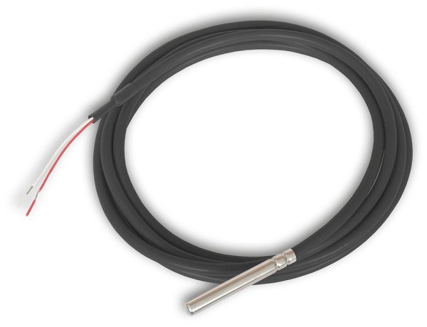 Senzor PT1000 se 100cm kabelem je vhodný pro měření vysokých teplot až do +200 °C. Senzor je chráněn ocelovým pouzdrem.