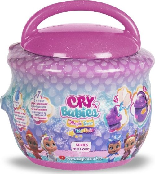 Cry Babies Magic Tears Fantasy roní skutečné slzy (barevné - pouze do vyčerpání obarvené tablety) každá panenka má své jedinečné zvířecí šatičky a je ukryta ve svém malém domečku se třpytivými doplňky nasbírej všech 6 postaviček + navíc 1 vzácnou postavičku napojením slznou pipetou a kapkami slz do domečku, otevřete kapsli magické slzy, dům Paci se následně otevře automaticky otočením kliky postupně odhalíte příslušenství