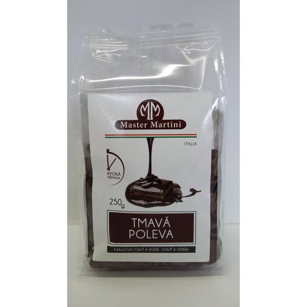 Velmi kvalitní tmavá poleva na dorty, rolády, cukroví a další druhy sladkého pečiva.