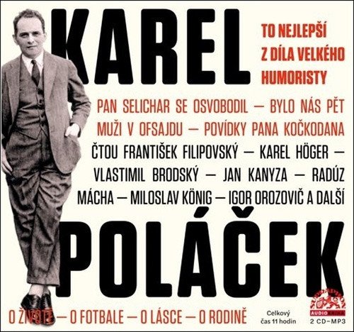 • Muži v ofsajdu, Bylo nás pět, Povídky pana Kočkodana, Pan Selichar se osvobodil a další povídky• Čtou Vlastimil Brodský, František Filipovský, Karel Höger, Jan Kanyza, Jaroslava Adamová, Miloslav König, Igor Orozovič, Radúz Mácha a další--------------Výběr ze zvukového záznamu díla jednoho ze čtenářsky nejoblíbenějších autorůKarel Poláček byl významný český spisovatel a novinář. Psal soudničky a je zakladatelem tzv. novinářských „sloupků“, proslulých, stejně jako jeho romány, inteligentním humorem. Zemřel na pochodu smrti z koncentračního tábora. V jeho tvorbě převažovaly humoristické povídky a prózy (Povídky pana Kočkodana, Pan Selichar se osvobodil, Muži v ofsajdu) s kritickými postřehy a parodií. V závěru života (1943, těsně před odchodem do Terezína) napsal i vlídný a úsměvný román Bylo nás pět. Kniha, psaná autorem v okamžicích životní krize, kdy ve vzpomínce na dětství popřel strašnou skutečnost odchodu do transportu, patří k tomu nejlepšímu, co v české humoristické literatuře kdy vzniklo. Tento komplet, podobně jako předchozí, věnovaný Otovi Pavlovi, kombinuje archivní supraphonské nahrávky mistrů mluveného slova s nově nahranými povídkami, v interpretaci mladých umělců aspirujících také na mistrovství.K charakteristickému stylu Poláčkova vypravěčského umění patří mísení hovorové a spisovné řeči s mistrně odpozorovanými komickými detaily.Celkový čas: 11 hod.