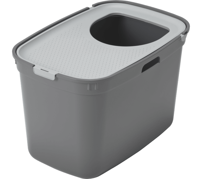 Moderní toaleta s horním vstupem nabízí čistší a praktičtější řešení než klasické toalety. Díky otvoru ve víku se stelivo při vyskakování zachytí, takže kolem zůstává minimum nepořádku. Vrchní vstup navíc brání psům nebo malým dětem, aby se do toalety dostali, a poskytuje kočce více soukromí při jejích potřebách.