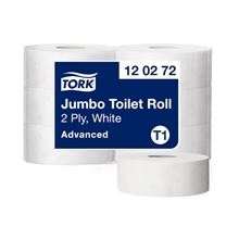 Toaletní papír Tork Jumbo poskytuje časovou efektivitou a nižšími náklady na provoz neboť nabízí mnohem větší objem toaletního papíru než standardní role Bílý dvouvrstvý toaletní papír s ražbou nabízí …