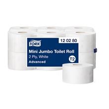 • Tork toaletní papír Mini Jumbo role Advanced 2vrstvý recyklovaný nabízí skvělý poměr mezi náklady a kvalitou a je ideální pro provozovny se střední až vysokou návštěvností
