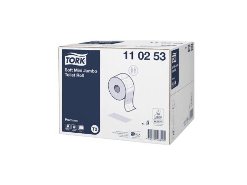 Toaletní papír Tork řady Premium - Mini Jumbo role, 2 vrstvy. Vhodný pro