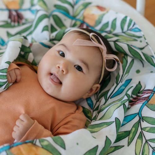 Vyrobeny z toho nejlepšího 100% bio bavlněného mušelínu v certifikované kvalitě (GOTS), jsou velmi jemné, prodyšné a lehké. Tommy Lise látkové pleny jsou pohodlné a velmi šetrné k jemné pokožce vašeho miminka. Vyberte si barevný design, který k vám nejlépe sedí, a ještě více tím upevněte vztah mezi vámi a vaším miminkem. Tyto jedinečné a zajímavé látkové pleny pro miminka upoutají vaši pozornost i pozornost vašeho miminka pokaždé, když je vytáhnete! Pečlivě navrženy a vyrobeny tak, aby odpovídaly těm nejvyšším standardům bezpečnosti. Údržba: Jemné praní v pračce nebo ruční praní ve studené vodě.Velikost: 120x120 cm Materiál: 100% bio bavlna Vhodné jako: univerzální přikrývka přikrývka do kočárku dečka ochrana při kojení bryndák