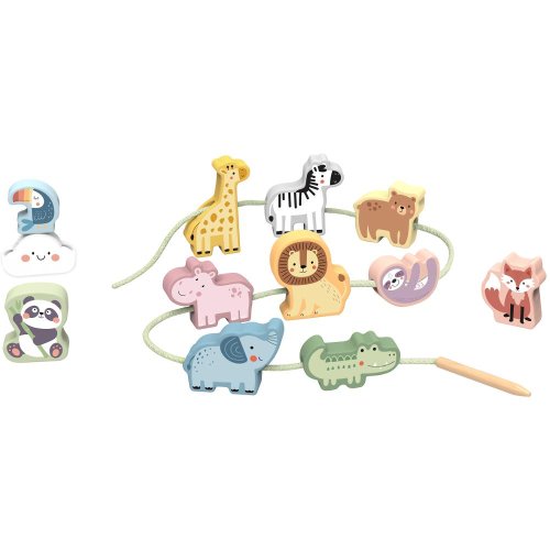 Navlékací divoká zvířátka jsou vynikající vzdělávací pomůckou pro malé děti Tato hračka nabízí množství zvířátek k navlékání Hra podporuje základní dovednosti koordinace ruky a oka Zároveň děti seznamuje s podmanivým světem zvířat z džungle, z nichž každé má svůj jedinečný tvar a velikost