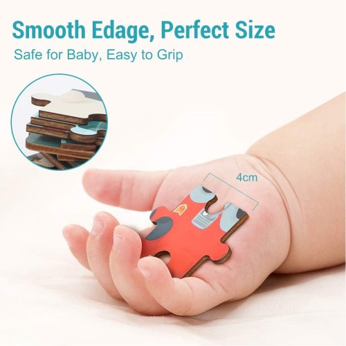 Dřevěné puzzle ukryté v roztomilé plastové hračce.