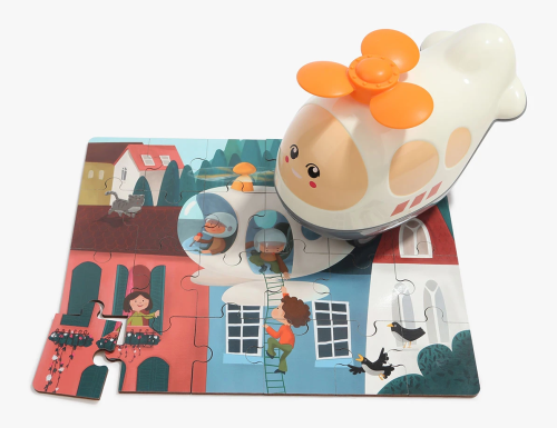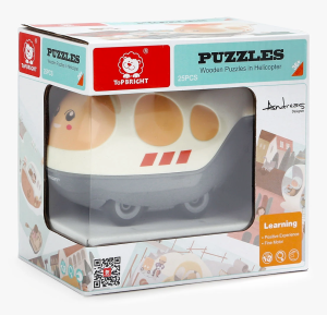 Dřevěné puzzle ukryté v roztomilé plastové hračce.