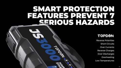 Maximálně spolehlivý a výkonný car jump startér JumpSurge 3000 s kapacitou 24000mAh (88,8Wh) a startovacím proudem až 3000A. Ideální zařízení, které kombinuje výkonný a moderní startovací zdroj pro Vaše vozidla, lodě, motocykly, skútry atd. S úžasným výkonem 3000A nastartuje Váš dopravní prostředek při vybité baterii až do maximálního objemu 7.0L pro naftový motor a 9.0L pro benzínový motor a to opakovaně v závislosti na objemu Vašeho motoru. Tento car jump startér můžete používat pro pohotovostní starty nejen vozidel, ale i motocyklů, skútrů, lodí, čtyřkolek, sněžných skútrů, karavanů, osobních i nákladních vozidel s 12V okruhem, atd. Celkem 6 elektronických ochran zajistí bezpečnost Vašeho přístroje, startovacího zdroje JumpSurge 3000, i Vašeho vozidla. Vše na základě předpisů CE a EU. Buďte v bezpečí. Díky kapacitě 24000mAh a podpoře rychlonabíjení QC3.0 jej můžete využít i pro rychlé nabíjení jakékoliv drobné elektroniky. Dále JumpSurge 3000 podporuje nabíjení jakéhokoliv zařízení pomocí konektoru typu Jack s maximálním výkonem 16,8V/10A max. Nabíjet startovací zdroj JumpSurge 3000 můžete pomocí konektoru USB-C (5V/3A;9V/3A, 12V3A, 15V3A, 20V2.25A) Výkonné LED světlo s funkcí SOS se Vám bude hodit při stanování, kempování, rybaření, nebo jako výstražná SOS svítilna.