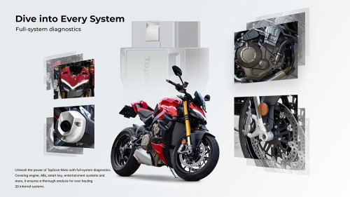 TopScan Moto od společnosti TOPDON® mění pravidla hry pro motocyklové nadšence a nabízí kapesní diagnostiku, která promění chytrý telefon v přesný diagnostický nástroj pro motocykly. Ať už jste příležitostný jezdec, zkušený kutil nebo profesionální mechanik, TopScan Moto poskytuje komplexní diagnostiku systému a funkce údržby bez námahy.