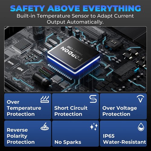 Díky inteligentním bezpečnostním funkcím TB6000Pro jsou uživatelé chráněni proti přepólování, jiskření, zkratu, přehřátí a přepětí.