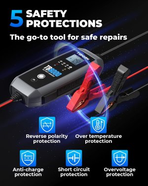 TOPDON TB 8000 nabízí vynikající bezpečnostní funkce díky 5-ti vestavěným systémům ochrany proti přepólování, zpětnému nabíjení, zkratu, přehřátí a přepětí. Navíc je tato nabíječka baterií vybavena inovativní technologií pro eliminaci jisker.