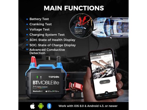 Kompaktní design a rozměry umožňují vložit tester prakticky kamkoli, do kapsy, brašny, boxu na nářadí nebo přihrádky v autě. Tester baterií TOPDON BT Mobile Lite poskytne technikům, profesionálům i domácím kutilům důležité informace o stavu baterie tím, že rychle a přesně identifikuje problémy s baterií a nabíjením.