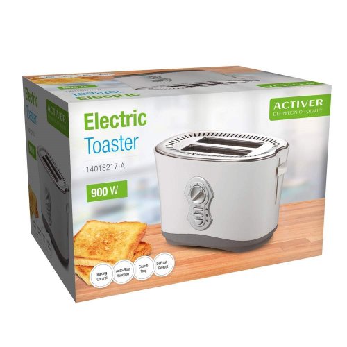 Elektrický topinkovač na dva tousty s příkonem 900 W v moderním designu má 7 stupňů nastavení intenzity opečení, automatické vypínání, tlačítko na rozpékání mraženého pečiva a tlačítko pro opakovaný ohřev. Dále má tlačítko na okamžité zastavení opékání, výsuvnou misku pro snadné odstranění drobků, světelný indikátor provozu a funkci centrování plátku pečiva pro rovnoměrné opečení různých velikostí toustů.
