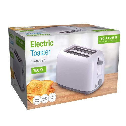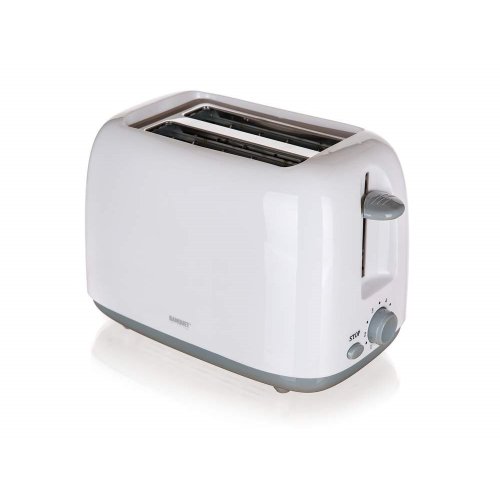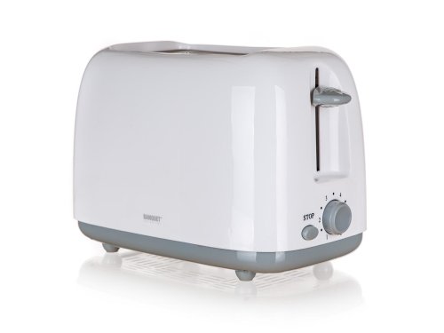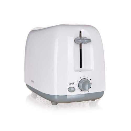 Topinkovač s časovým ovladačem. Elektrický topinkovač na dva tousty, s příkonem 750 W, má 6 stupňů nastavení intenzity opečení, automatické vypínání, tlačítko na okamžité zastavení opékání a výsuvnou misku pro snadné odstranění drobků.