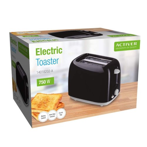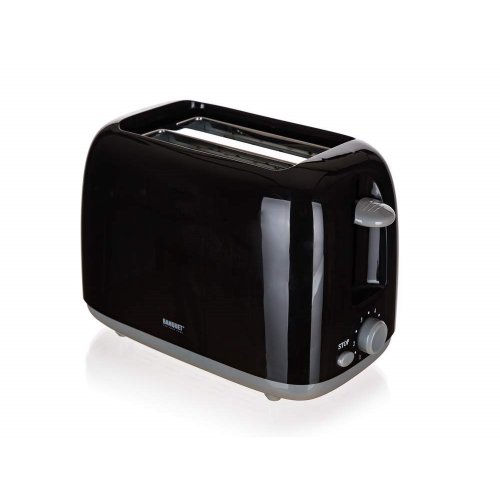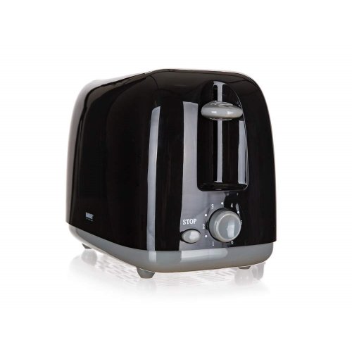Topinkovač s časovým ovladačem. Elektrický topinkovač na dva tousty, s příkonem 750 W, má 6 stupňů nastavení intenzity opečení, automatické vypínání, tlačítko na okamžité zastavení opékání a výsuvnou misku pro snadné odstranění drobků.
