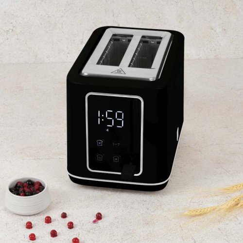 Tento digitální toustovač v elegantní černo-stříbrné kombinaci přináší nejen stylový vzhled, ale i praktické funkce pro pohodlnou přípravu vašich oblíbených toastů.