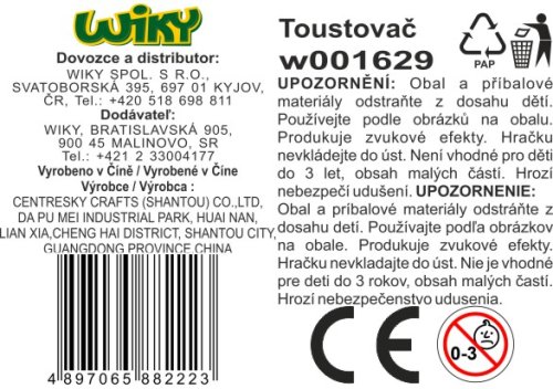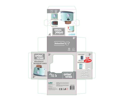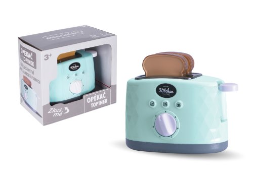 Na toustovači můžeš nastavit stupeň teploty, opékání spustíš stlačením přepínače na pravé straně. Celá příprava toustíků bude také doprovázena zvukovými efekty!