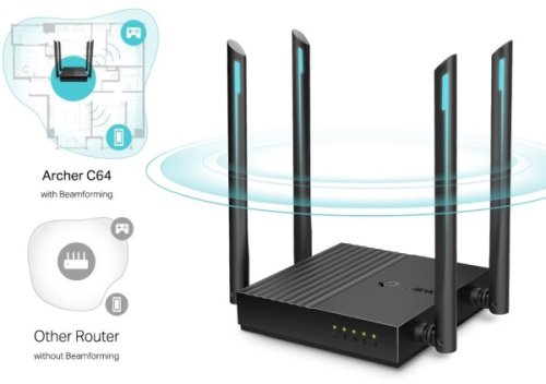 Archer C64 je velmi kompaktní Dual-Band router značky TP-Link, který obsahuje 4x 10/100/1000Mbps LAN, 1x 10/100/1000Mbps WAN a 4 fixní antény. Bezdrátová část umí pracovat ve dvou pásmech zároveň a to rychlostí 400Mbps ve 2.4GHz pásmu a 866Mbps v pásmu 5GHz. Router podporuje IPv4 i nejnovější IPv6 routování. Router kromě nejvíce používaného modu AP Router podporuje i režim Access point.