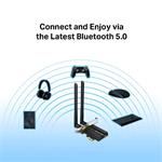 Duální bezdrátová karta do PCIe slotu s přenosovou rychlostí až 2402 Mb/s (5 GHz) + 574 Mb/s (2,4 GHz). Je plně kompatibilní se všemi bezdrátovými produkty standardů 802.11a/b/g/n/ac/ax. Karta podporuje Bluetooth 5.0 přenos a je dodávána se 2 odpojitelnými externími anténami, které lze v případě potřeby vyměnit za jiné s větším ziskem. Bezdrátová komunikace je chráněná šifrováním 64/128 bit WEP, WPA/WAP2/WPA3, WPA-PSK/WPA2-PSK a 802.1x, aby vaše data zůstala zabezpečena.
