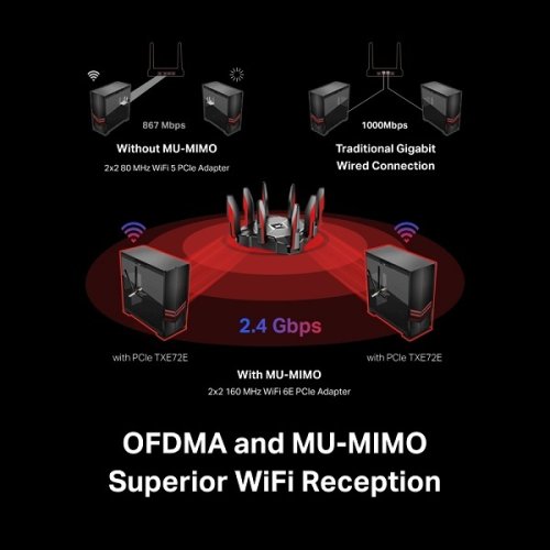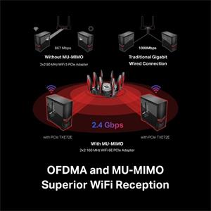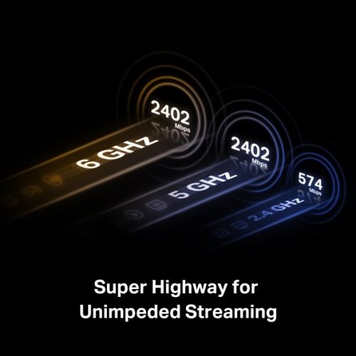 Bezkonkurenční třípásmová rychlost - zvýšení celkové rychlosti až na 2402 Mb/s (6 GHz) + 2402 Mb/s (5 GHz) + 574 Mb/s (2,4 GHz)