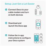 Deco je řešení Wi-Fi sítě pro celý dům, které má nejkomplexnější zabezpečení. Poskytuje rychlý nepřerušovaný Wi-Fi signál pro každou místnost díky tomu, že využije výkon tří samostatných jednotek AC1300 pro souvislé pokrytí plochy až 420 m2. Nastavení Deco je snadné a systém může růst spolu s tím, jak budete svou domácnost vybavovat dalšími zařízeními. A na systém Deco se vztahuje v daném oboru jedinečná doživotní nepřetržitá podpora.