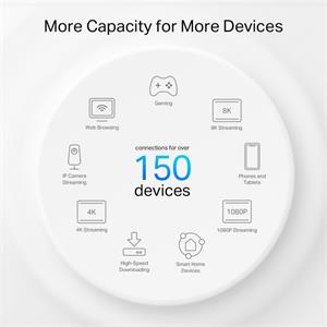 WiFi 6 výrazně zvyšuje pokrytí a celkovou kapacitu připojení. WiFi 6 s Powerline pracují společně při přenosu dat mezi jednotkami Deco, čímž vám poskytují vysokou rychlost. Kapacita je 4x větší a rychlost dosahuje až 3x vyšší hodnoty než u starších technologií.