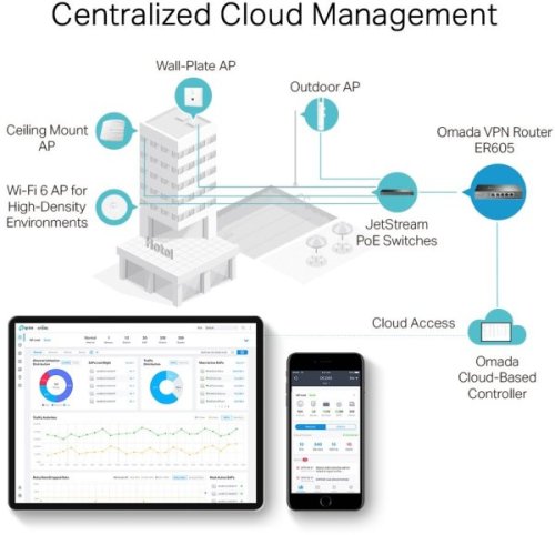 Centralizovaná správa: Cloudový přístup a aplikace Omada pro mimořádné pohodlí a snadnou správu Pět gigabitových portů: Vysokorychlostní kabelové připojení Až 3 porty WAN: 1 gigabitový port WAN a 2 gigabitové porty WAN/LAN s vyvážením zátěže zvyšují míru využití víceřádkového širokopásmového připojení