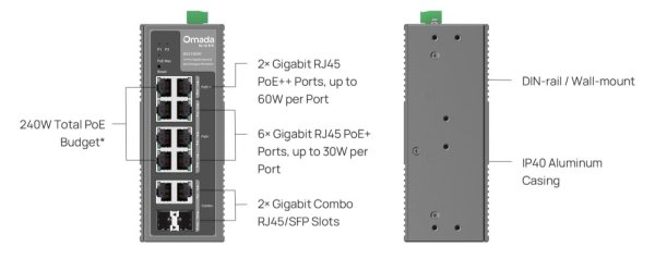 Omada 10portový gigabitový průmyslový Easy Managed switch se 6 porty PoE+ a 2 porty PoE++