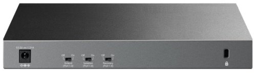 TP-Link PoE Switch LS1210GP je nemanagovatelný gigabitový PoE Switch s 9x 10/100/1000Mbps LAN porty a 1x SFP portem. Na 8 ethernetových portech podporuje PoE 802.3af/at až 30W/port. Celkový PoE budget switche je 61W. Switch umožňuje i PoE na vzdálenost 250m při přepnutí speciálního přepínače, který způsobí ponížení linkové rychlosti na PoE portech na 10Mbps, což je dostačující pro přenos obrazu z kamer. Další funkcí je PoE auto recovery, která automaticky restartuje nereagující zařízení napájená pomocí PoE nebo port isolation.