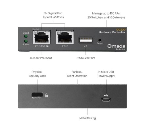 Podporuje až 100 přístupových bodů Omada, 10 bran Omada, maximálně 20 switchů Omada a maximálně 2 vybrané GPON OLT jednotky DeltaStream*