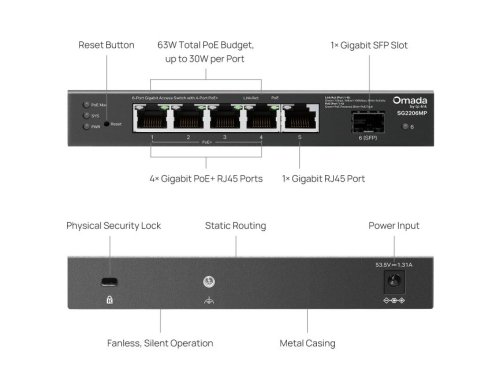 TP-Link SG2206MP 6xGb Omada Access switch Omada Access 6portový gigabitový switch se 4 porty PoE+