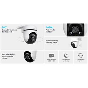 Tapo C500 IP kamera v provedení PTZ dome, disponuje 2 MP fixním objektivem (1920 × 1080, 15 fps) s fixní ohniskovou vzdáleností a snímačem 1/3". Nechybí ani slot na microSD karty do kapacity 512 GB, IR světlo na vzdálenost 30 m, audio mikrofon i reproduktor, krytí IP65 a integrovanou 2,4 GHz WiFi s vestavěnými anténami.