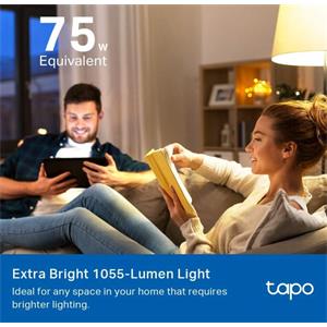 Tapo L535E je stmívatelná žárovka s paticí E27 disponující 16 miliony barvami a chytrými funkcemi. Díky světelnému toku 1055 lm a vyzařovacímu úhlu 220° dokáže nahradit klasickou žárovku s příkonem 75W a to se spotřebou pouhých 8.6 W! Udávaná životnost žárovky činí 25 000 hodin. Kromě standardního bílého světla o teplotě 2500-6500K dokáže žárovka svítit různými barvami díky diodám RGB.
