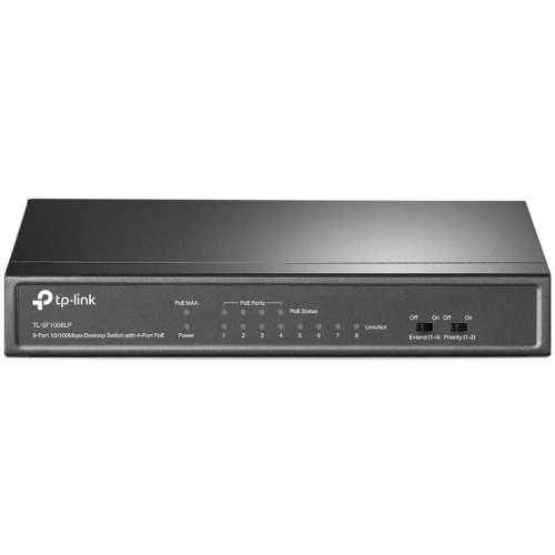 8x 10/100Mb/s RJ45 port Je vybaven 4 podporovanými porty PoE+ přenáší data a napájení přes jednotlivé kabely Pracuje s PD kompatibilními a se standardem IEEE 802.3af